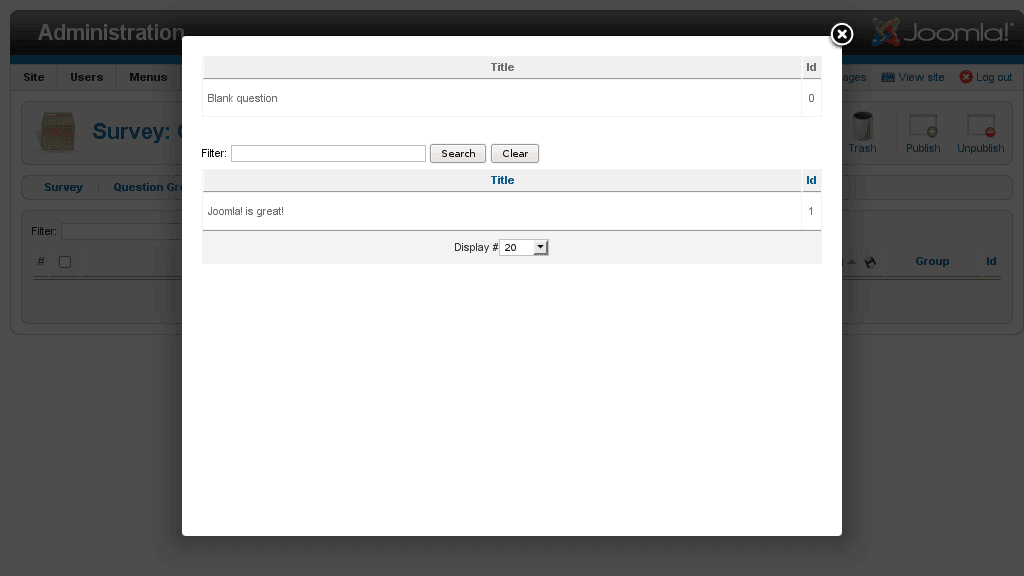 Another new feature is the start and end date parameters of surveys. This is similar to start and end publishing date of articles, so before the start date or after the end date it's not possible to fill in the survey. If they are not set, then there is no such limit on the survey.